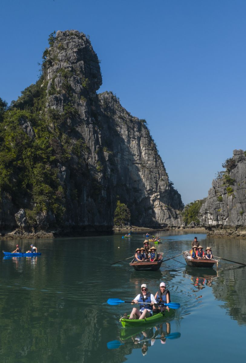 Dù trong những ngày mùa đông lạnh giá, vịnh Bái Tử Long vẫn khoác lên mình sắc xanh trong trẻo và sự tĩnh lặng hiếm có. Ánh nắng dịu nhẹ xuyên qua những dãy núi đá vôi trùng điệp, mặt nước xanh ngọc phẳng lặng ôm trọn các đảo đá, bãi cát và hang động tự nhiên. Không gian ấy tạo nên một Bái Tử Long khoáng đạt, mang sức hấp dẫn riêng có của vùng biển đảo còn nguyên nét hoang sơ.