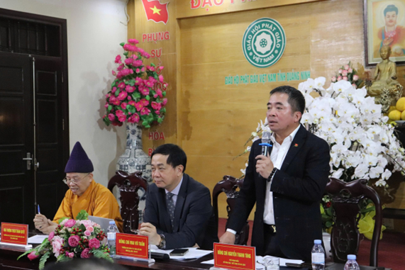 Đại diện Ban Trị sự Giáo hội Phật giáo Việt Nam tỉnh Quảng Ninh thông tin về ý nghĩa của Di sản văn hóa thế giới Yên Tử.