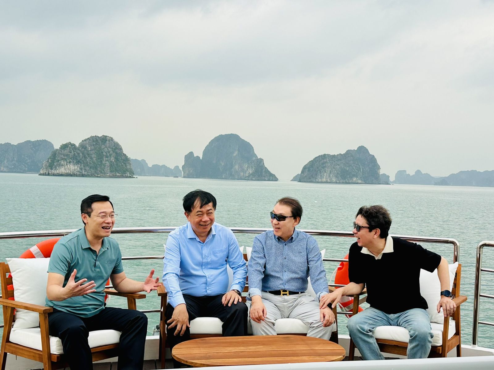 Ông Jung Dong Won, Chủ tịch Hội đồng Quản trị Tập đoàn SG (thứ 2 từ phải sang) bày tỏ sự vui mừng khi được trở lại thăm vịnh Hạ Long