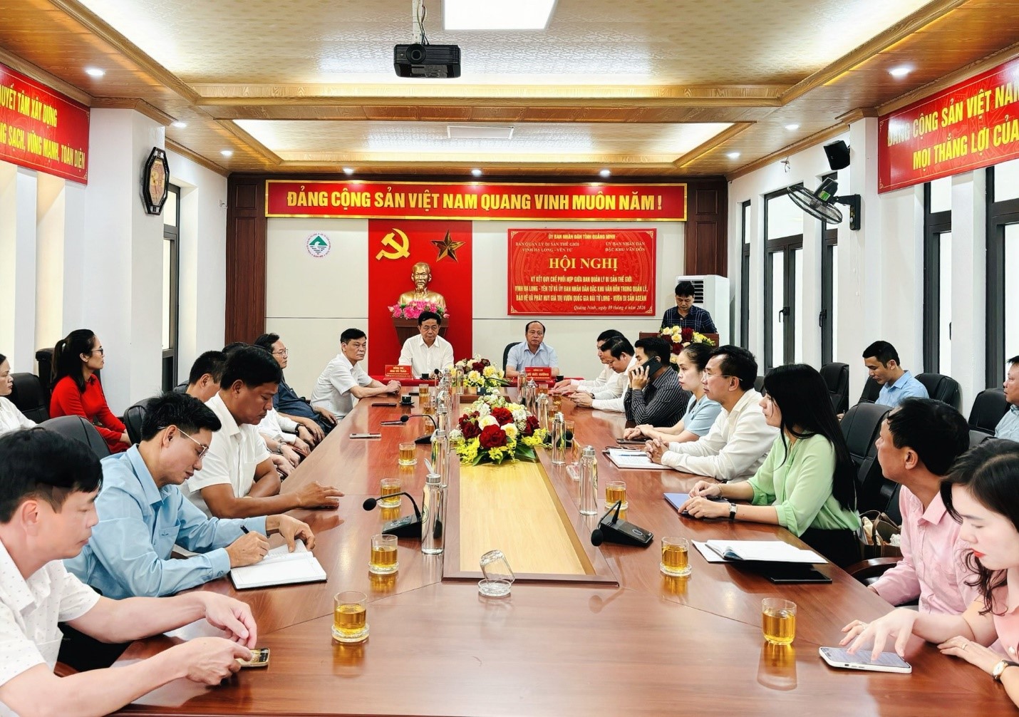 Tham dự Hội nghị ký kết Quy chế phối hợp, về phía Ban Quản lý di sản Thế giới vịnh Hạ Long – Yên Tử có đồng chí Mai Vũ Tuấn - Tỉnh ủy viên, Bí thư Đảng ủy, Trưởng Ban.  Cùng dự có các đồng chí Phó Trưởng Ban: đồng chí Vũ Kiên Cường, đồng chí Vũ Văn Hiển, đồng chí Phạm Ngọc Vinh và đồng chí Đinh Sỹ Nguyên. Về phía UBND đặc khu Vân Đồn có đồng chí Vũ Đức Hưởng - Phó Bí thư Đảng ủy, Chủ tịch UBND đặc khu; cùng đồng chí Đào Văn Vũ - Phó Chủ tịch Thường trực UBND. Tham dự hội nghị còn có đại diện lãnh đạo các phòng, ban, đơn vị trực thuộc hai cơ quan.
