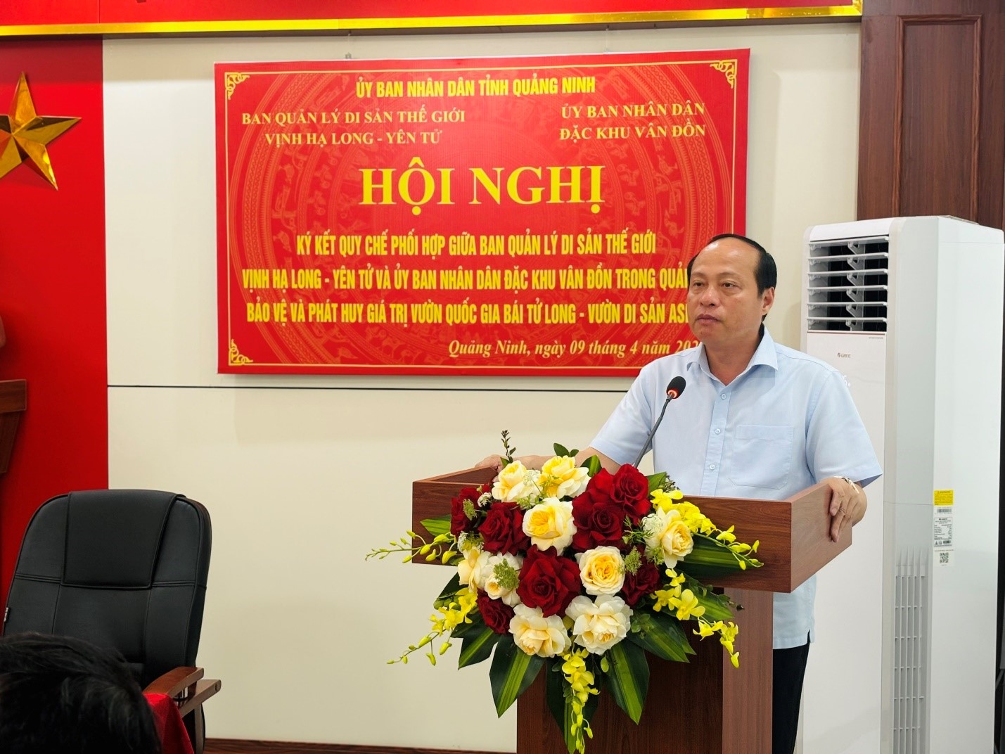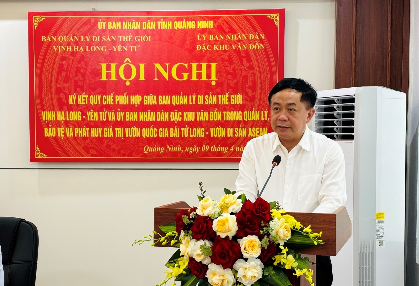 Phát biểu tại Hội nghị, đồng chí Mai Vũ Tuấn - Trưởng Ban Quản lý Di sản thế giới vịnh Hạ Long – Yên Tử nhấn mạnh Vườn quốc gia Bái Tử Long được công nhận là Vườn Di sản ASEAN không chỉ khẳng định giá trị nổi bật về đa dạng sinh học, cảnh quan và hệ sinh thái biển đảo, mà còn mở ra định hướng phát triển theo mô hình kinh tế xanh, bền vững. Đồng chí cho rằng, việc ký kết Quy chế phối hợp là yêu cầu cấp thiết nhằm tăng cường hiệu lực quản lý, bảo vệ tài nguyên, kiểm soát các hoạt động có nguy cơ tác động đến môi trường, đồng thời thúc đẩy phát triển du lịch sinh thái gắn với bảo tồn.