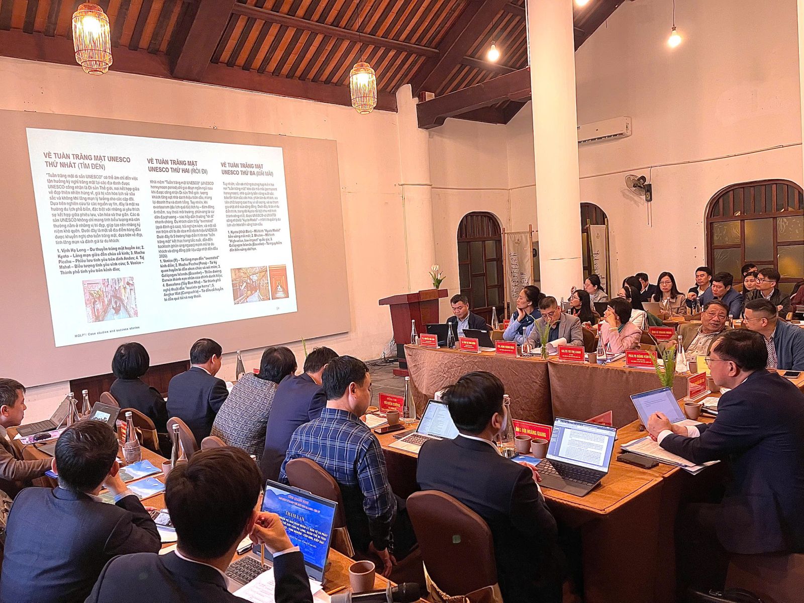 Trong phiên làm việc buổi sáng, các chuyên gia tập trung tham vấn đối với ba nội dung trọng tâm gồm: (1) Đề án nâng tầm giá trị Di sản- Kỳ quan thiên nhiên thế giới vịnh Hạ Long, (2) Đề án bảo tồn và phát huy giá trị Di sản văn hóa thế giới Quần thể di tích và danh thắng Yên Tử-Vĩnh Nghiêm- Côn Sơn, Kiếp Bạc, (3) Nội dung việc lập Quy hoạch bảo quản, tu bổ, phục hồi Quần thể di tích và danh thắng Yên Tử- Vĩnh Nghiêm- Côn Sơn, Kiếp Bạc. Nhiều ý kiến chuyên sâu đã được trao đổi, làm rõ định hướng, giải pháp và cách thức triển khai trong thời gian tới.