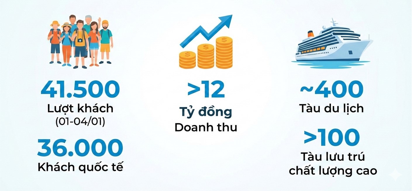 Song song với các sự kiện, hệ thống dịch vụ du lịch trên vịnh và vùng ven tiếp tục được mở rộng. Hiện nay, Vịnh Hạ Long có khoảng 400 tàu du lịch được cấp phép hoạt động, trong đó hơn 100 tàu lưu trú nghỉ đêm, đóng vai trò quan trọng trong việc hình thành phân khúc du lịch chất lượng cao. Thực tế cho thấy hướng đi này đang phát huy hiệu quả, trong kỳ nghỉ Tết Dương lịch từ 01-04/01/2026, Vịnh Hạ Long đón gần 41.500 lượt khách, trong đó trên 36.000 lượt khách quốc tế, doanh thu đạt hơn 12 tỷ đồng - một con số tích cực trong thời điểm chưa bước vào mùa cao điểm hè.