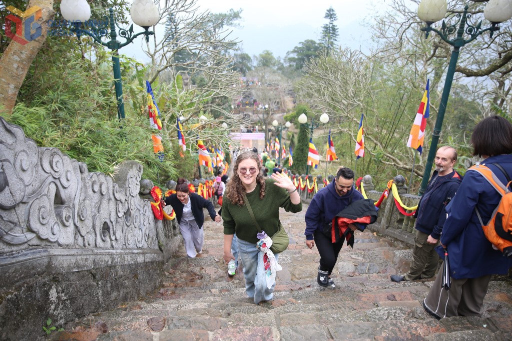 Không chỉ du khách trong nước, du khách nước ngoài cũng hào hứng tới tham quan, trải nghiệm không gian văn hóa – tâm linh độc đáo tại Khu di tích và danh thắng Yên Tử trong những ngày đầu xuân năm mới.