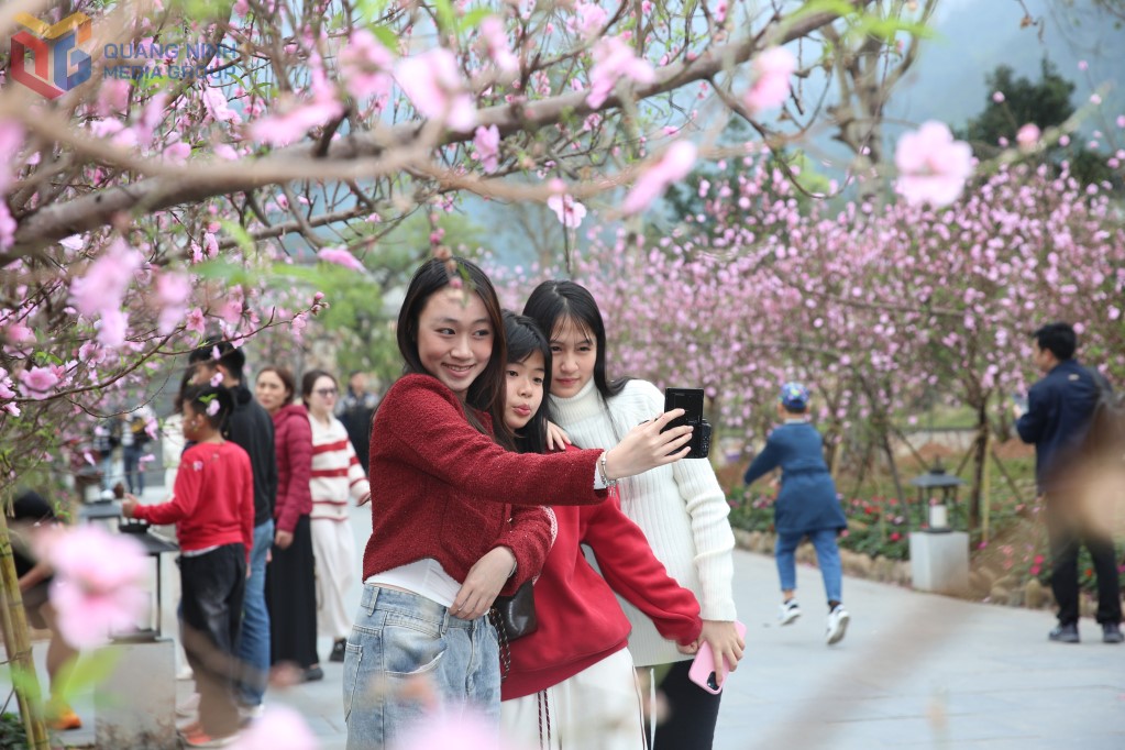 Du khách cùng nhau lưu lại những khoảnh khắc xuân tại Khu di tích và danh thắng Yên Tử, ghi dấu hành trình du xuân đầu năm.