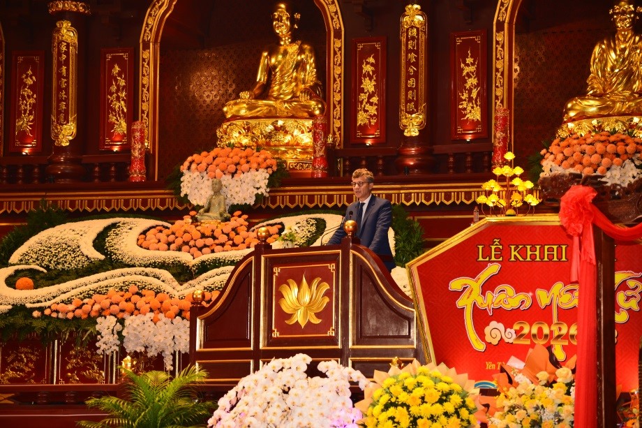 Đại biểu quốc tế có ông Jonathan Wallace Baker, Trưởng đại diện Văn phòng UNESCO tại Hà Nội cùng toàn thể đại biểu, các vị tăng, ni, phật tử, nhân dân và du khách thập phương.