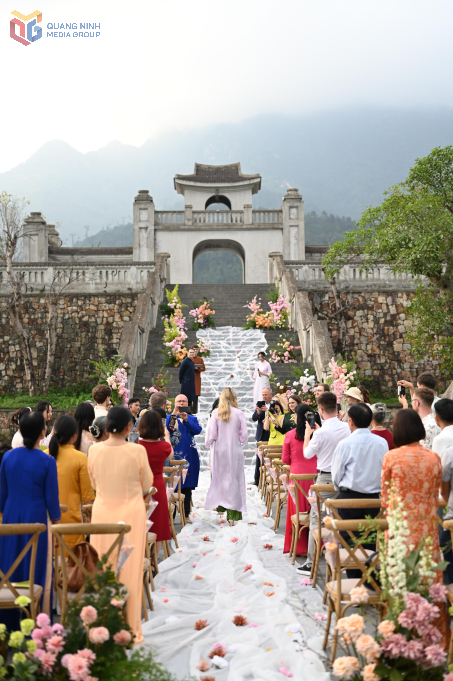 Một đám cưới được tổ chức tại Trung tâm Văn hóa Trúc Lâm dưới chân non thiêng Yên Tử.
