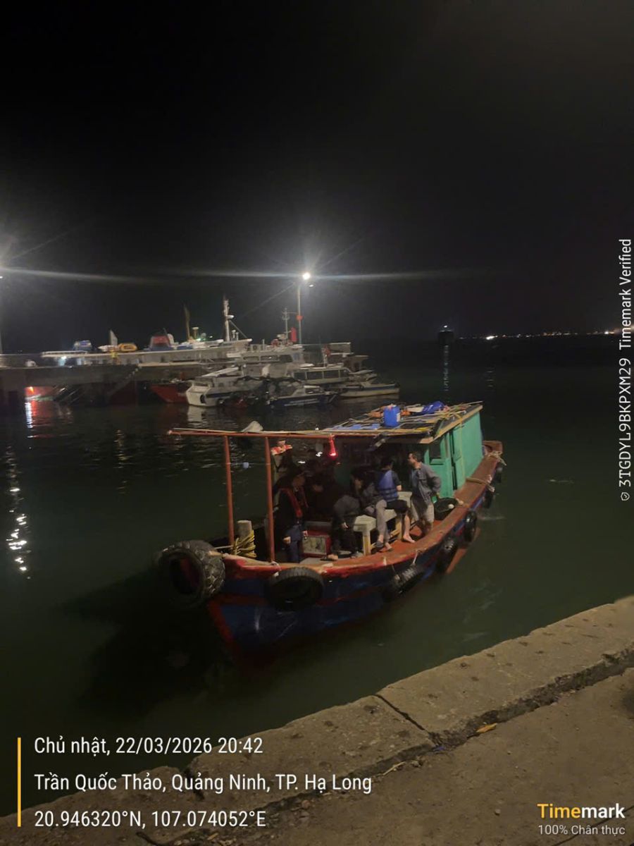 Tối 22/3, tại khu vực biển hòn Con Chó, trong quá trình tuần tra, kiểm soát, Đội Tuần tra, Cứu nạn thuộc Trung tâm Giám sát, an toàn và cứu nạn, cứu hộ (Ban Quản lý di sản thế giới vịnh Hạ Long - Yên Tử) phối hợp với Đội Cảnh sát đường thủy, Phòng Cảnh sát giao thông (Công an tỉnh Quảng Ninh), phát hiện tàu cá mang số hiệu QN-2351-TS có dấu hiệu chở khách tham gia hoạt động câu mực trái phép.